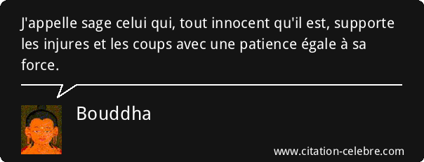Chez ceux qui n‘accueillent jamais de telles pensées, la haine s‘apaise. (Dhammapada Section I) En ce monde, la haine n’a encore jamais dissipé la haine. Vivons donc heureusement, sans haïr ceux qui nous haïssent. Seul l’amour dissipe la haine. (Dhammapada, 320) 12) Citations de Bouddha sur la liberté : Si tu restes silencieux comme un gong fêlé et qu’il n’y a plus de colère en toi, c’est que tu es déjà libéré. (Dhammapada) Point d’obsessions enfiévrées pour celui qui a traversé. Il s’est affranchi de toute peine, s’est absolument libéré, et s’est délivré de toutes chaînes. (Dhammapada) Il n’est pas de détresse pour celui qui a terminé son voyage, qui a abandonné tout souci, qui s’est libéré de toutes parts, qui a rejeté tous ses biens.