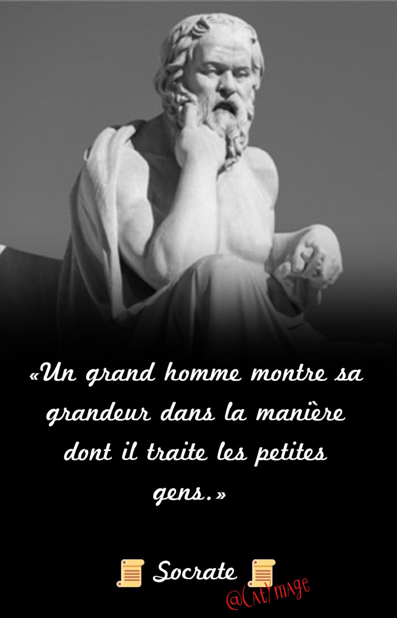 Socrate ; Le monde grec – Ve s. av. J.-C. Connais-toi toi-même. Socrate ; Le monde grec – Ve s. av. J.-C. Il faut être deux pour se quereller. Socrate ; Les sentences et adages – Ve s. av. J.-C. Le bonheur, c’est le plaisir sans remords. Socrate ; Le monde grec – Ve s. av. J.-C. Être homme de bien et ne pas chercher à le paraître, c’est le vrai chemin de la gloire. Socrate ; Le monde grec – Ve s. av. J.-C. Être sage dans la prospérité, c’est savoir marcher sur la glace. Socrate ; Les sentences et adages – Ve s. av. J.-C. Il vaut mieux obéir aux lois qu’aux hommes. Socrate ; Les sentences et adages – Ve s. av. J.-C.