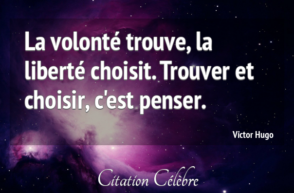 La volonté trouve, la liberté choisit. Trouver et choisir, c’est […] – Victor Hugo