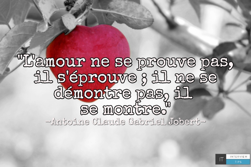 Un amour véritable – S’attache seulement à ce qu’il voit aimable. [ L’Illusion ] Corneille Pierre 168. Ecrire est un acte d’amour. S’il ne l’est pas, il n’est qu’écriture. Jean Cocteau 169. Le meilleur moment de l’amour, c’est quand on monte l’escalier. Georges Clemenceau 170. Une certaine idée de l’amour est une preuve de civilisation raffinée, comme la belle prose. Jacques Chardonne 171. L’amour, c’est beaucoup plus que l’amour. [ L’Amour, c’est beaucoup plus que l’amour (1937) ] Jacques Chardonne 172. Il faut beaucoup d’années pour apprendre certains mots d’amour. Jacques Chardonne 173. Un homme amoureux est un homme qui veut être plus aimable qu’il ne peut; et voilà pourquoi tous les amoureux sont ridicules. [ Maximes et Pensées ] Sébastien Roch, dit Nicolas de Chamfort 174.