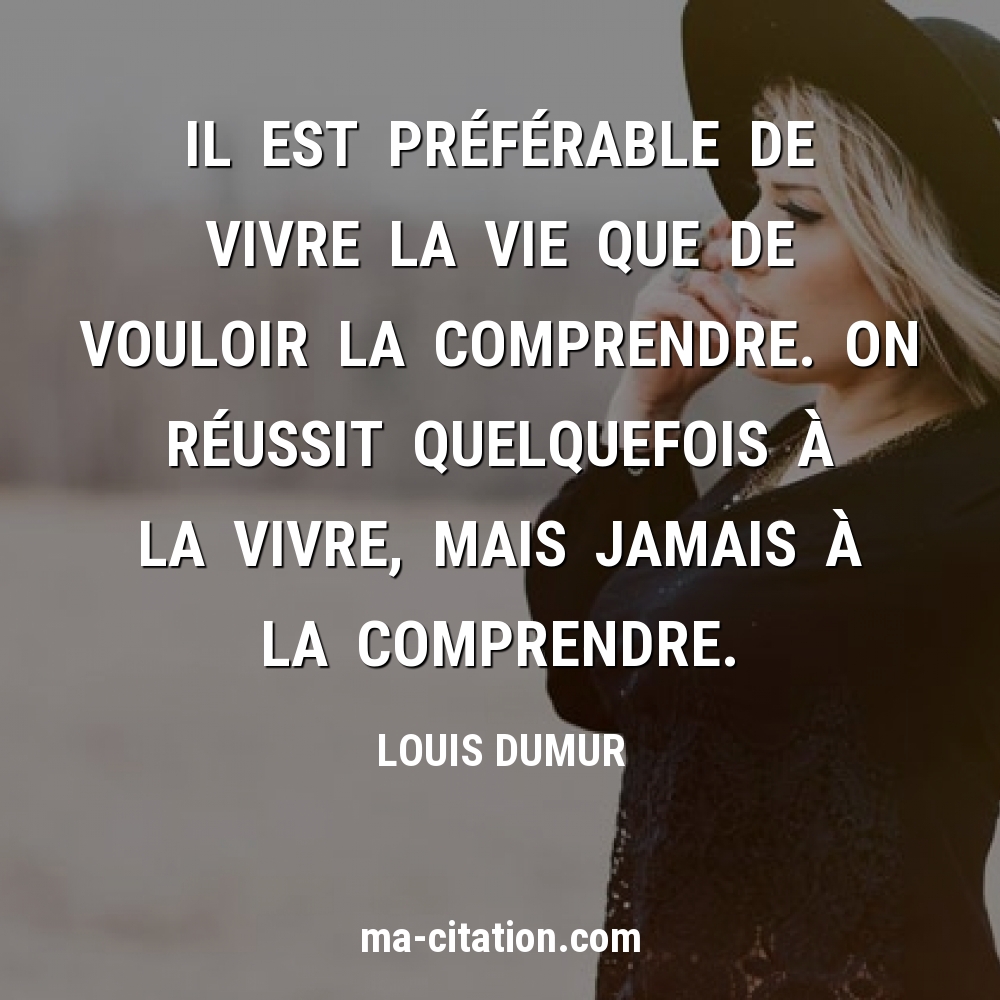 Les citations et pensées sur comprendre Ce dictionnaire contient 109 citations et proverbes comprendre : Il est encore moins important de savoir beaucoup que de comprendre facilement. Citation de Victor Cherbuliez ; Les pensées extraites de ses œuvres (1913) La jouissance que l’on éprouve à être compris et apprécié par ceux qu’on aime est très grande. La vanité n’y entre pour rien ; elle vient toute du cœur. Citation de Victor Cherbuliez ; Les pensées extraites de ses œuvres (1913) Il ne faut jamais chercher à comprendre un mystère quand c’est un mystère heureux. Citation de Jean Dutourd ; Les mémoires de Mary Watson (1980) Tout comprendre, ce serait presque tout excuser.