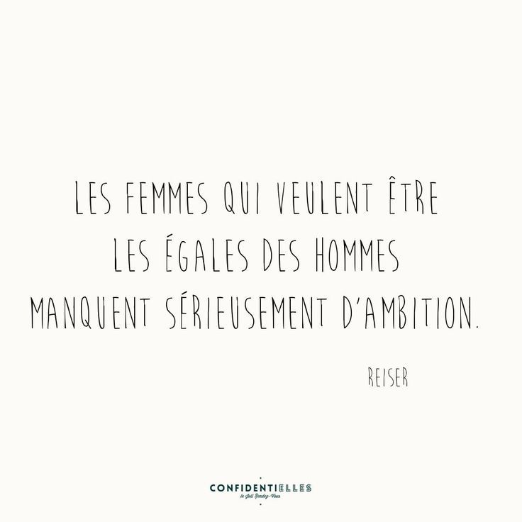 Je continuerai à être aventureuse, à changer, à suivre mon esprit et mes yeux, refusant d’être étiquetée et stéréotypée. L’affaire est de se libérer soi-même: trouver ses vraies dimensions, ne pas se laisser gêner. Virginia Woolf Simple, forte, aimant l’art et l’idéal, brave et libre aussi, la femme de demain ne voudra ni dominer, ni être dominée. Louise Michel On ne naît pas femme : on le devient… Simone de Beauvoir La femme n’est victime d’aucune mystérieuse fatalité : il ne faut pas conclure que ses ovaires la condamnent à vivre éternellement à genoux. Simone de Beauvoir Voir aussi… PARTAGER SUR Twitter Facebook LinkedIn Pinterest WhatsApp Mail imprimer Vous aimerez aussi + d’articles sur le thème /Citations CopyArticle édité le 05/04/2022