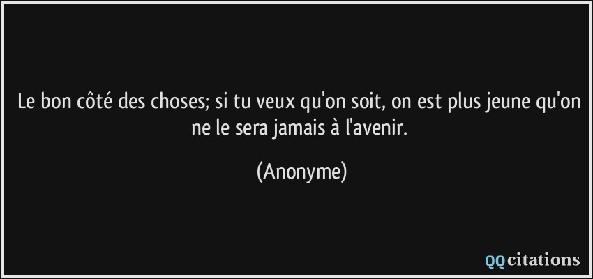 Citation de Henri de Régnier ; L’égoïste est celui qui ne pense pas à moi (2015) Profite de ta jeunesse, la vie n’a qu’un instant. Citation de Gustave Le Bon ; La civilisation des Arabes (1884) Laissons à la belle jeunesse ses folâtres emportements. Citation de Voltaire ; À Mme du Châtelet (1741) La jeunesse est le temps des illusions, et l’âge mûr est celui de la réalité qui dissipe les illusions et désabuse. Citation de Pierre-Jules Stahl ; Les pensées et réflexions diverses (1841) La vieillesse regrette le passé, et la jeunesse dévore le présent, pour anticiper sur l’avenir.