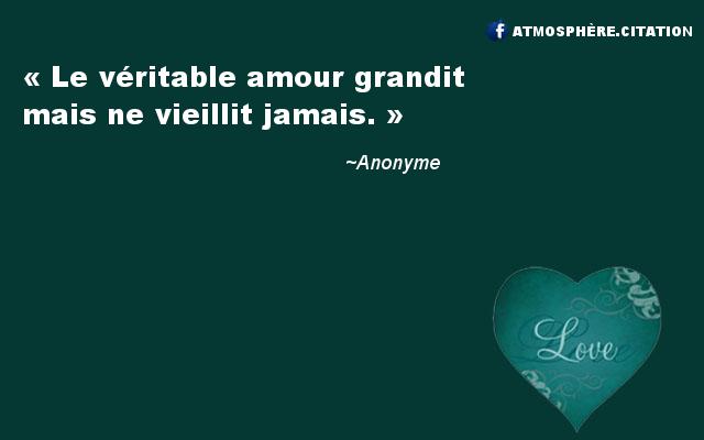 Citation de Félicité de Genlis ; Arthur et Sophronie (1805) Le véritable amour ne vous épuise pas, au contraire, il vous embellit, il vous illumine. Citation de Omraam Mikhaël Aïvanhov ; La pédagogie initiatique (1980) Le véritable amour est le besoin de sublime. Citation de André Maurois ; Les roses de septembre (1956) Il n’y a d’amour véritable qu’avec le sacrifice volontaire. Citation de Henri-Frédéric Amiel ; Journal intime, le 30 octobre 1860. L’amour véritable n’est qu’abandon de soi et obéissance. Citation de Henri-Frédéric Amiel ; Journal intime, le 16 juin 1874. Une preuve incontestable du véritable amour, c’est qu’il est d’autant plus grand qu’il excite plus d’intérêt parmi ceux qui le contemplent. Citation de Jean-Paul Richter ; Les pensées et réflexions (1829) L’amour véritable est un feu dévorant.