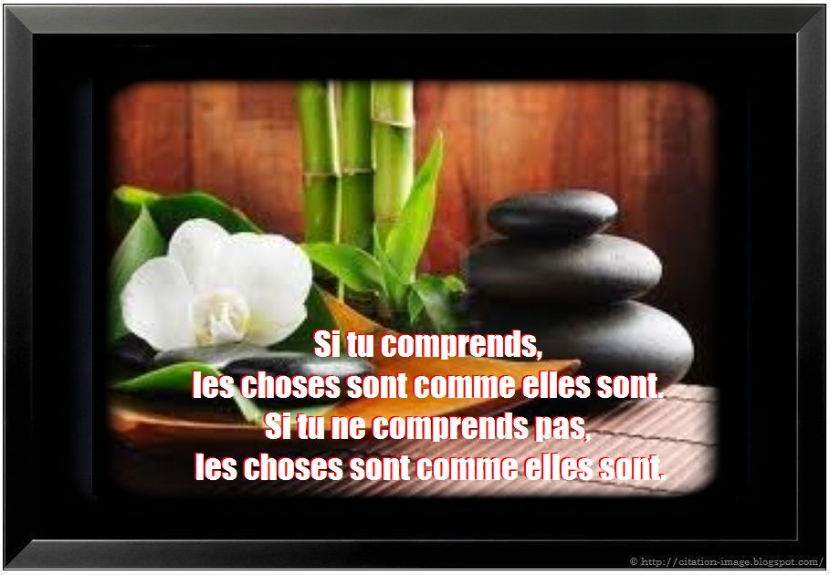Les difficultés et les obstacles, s’ils sont bien compris et utilisés, peuvent devenir des sources de force inattendues (Sogyal Rinpoche) 7. Sache-le : la force est en toi dans ton cœur et dans ton corps. Crois en toi, crois en les autres (Soeur Emmanuelle) 8. Quel est le plus important, réussir ou trouver un sens à votre effort de réussir ? (Shunryu Suzuki) Citations zen sur le bonheur 9. Sois heureux un instant, cet instant c’est ta vie (Khayyam) 10. Chaque coup de colère est un coup de vieux; chaque sourire est un coup de jeune (Proverbe chinois) 11. Lorsqu’une porte du bonheur se ferme, une autre s’ouvre ; mais parfois on observe si longtemps celle qui est fermée qu’on ne voit pas celle qui vient de s’ouvrir à nous (Helen Keller) 12.