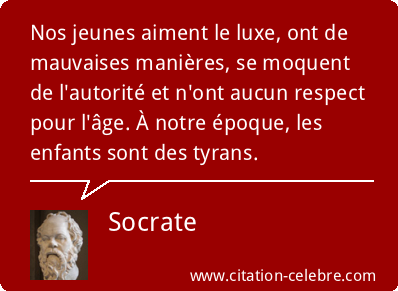 Nos jeunes aiment le luxe, ont de mauvaises manières, se moquent […] – Socrate