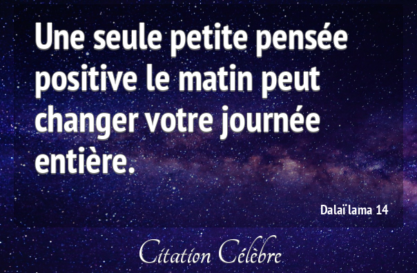 Mes 50 citations positives et inspirantes d’auteurs préférées Immergez-vous dans ces messages optimistes, et exercez-vous à mettre en pratique la pensée positive au quotidien. Ne sous-estimez pas l’importance de ces lectures, surtout si vous prenez l’habitude de les ressentir. Elles vous aideront à faire vos premiers pas vers la vie qui vous ressemble, joyeuse, libre et sereine Mise en garde : ne pensez pas que lire des citations positives et inspirantes est quelque chose de banal. Vous pouvez réellement en faire une pratique qui fait la différence. Pour cela, prenez l’habitude d’apaiser votre mental pour ressentir ce genre d’enseignements.