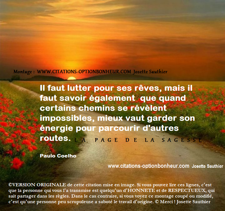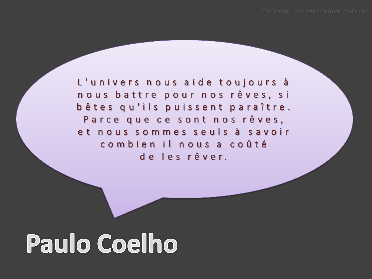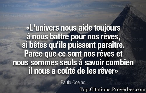 » Yuval Abramovitz « On rêve trop souvent les yeux fermés, il faut plutôt rêver les yeux ouverts. » Mike Horn « Pourquoi passer tant de temps à nous préparer au moment où nous pourrons enfin faire ce qui nous plait au lieu de le faire tout de suite ? » John P. Strelecky « Le véritable challenge […], c’est de réaliser que quelque chose nous épanouit parce que nous l’avons déterminé nous-même, à titre personnel, pas parce qu’on nous dit que cela doit nous épanouir. » John P. Strelecky « Les rêves les plus simples sont les plus fabuleux. » Claude Bergame « La réussite survient lorsque tes rêves deviennent plus grands que tes excuses. » Anonyme Maintenant, action ! « La distance entre tes rêves et la réalité s’appelle l’action.