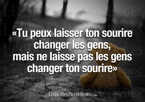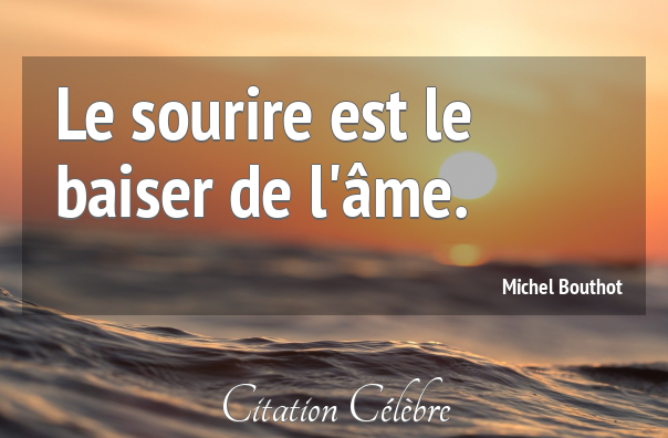 Citation de Évariste de Parny ; Le torrent (1778) Le sourire est le reflet de l’âme. Citation de Pierre Dac ; L’os à moelle, 13 mai 1938 – 7 juin 1940. Le sourire est la grimace de la jeunesse, et la grimace est le sourire de la vieillesse. Citation de Adolphe d’Houdetot ; Dix épines pour une fleur (1853) Le sourire du malheureux est son cache-misère. Citation de Robert Sabatier ; Le livre de la déraison souriante (1991) Le sourire est l’institut de beauté du visage. Citation de Robert Sabatier ; Le livre de la déraison souriante (1991) Le sourire, c’est peut-être simplement pour ça : Être désirable, encore. Citation de Philippe Besson ; L’arrière-saison (2002) Le sourire, ce doux épanouissement qui rend la jeunesse semblable aux fleurs.
