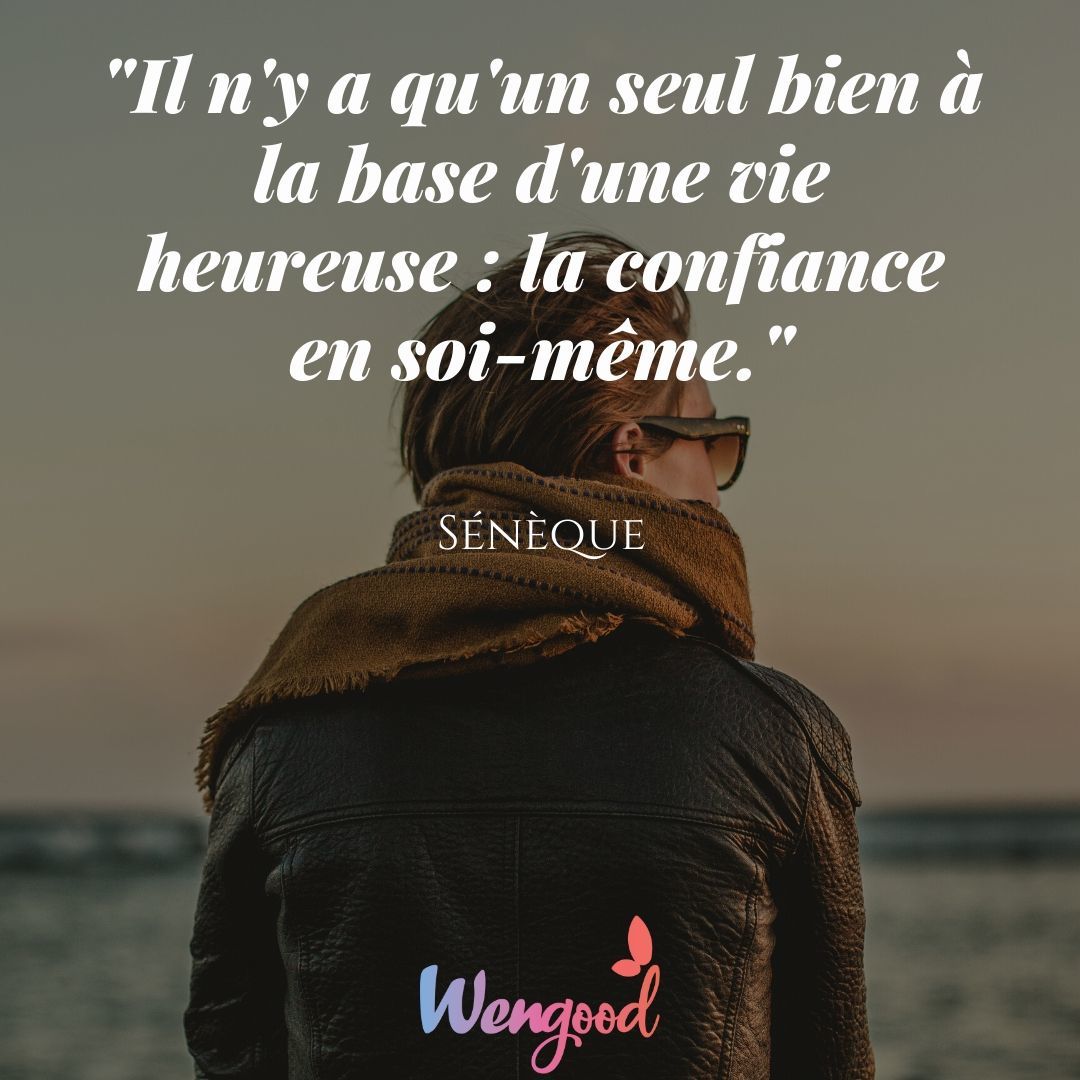 Citation de Anne Barratin ; De toutes les paroisses (1913) Une excessive fierté m’a presque guéri de la vanité ; et je suis fier aussi sans être orgueilleux, car je me crois peu de chose et n’ai pas de confiance en moi. Citation de Henri-Frédéric Amiel ; Journal intime, le 11 avril 1853. La confiance s’acquiert, elle ne se demande pas : qui la mérite n’a pas besoin de la demander. Citation de Émile de Girardin ; Les pensées et maximes (1867) La confiance du sage en lui-même diminue à mesure que son savoir grandit : ainsi l’ombre du soleil décroît avec son élévation. Citation de John Petit-Senn ; Les bluettes et boutades (1846) Une bonne part du talent, c’est la confiance en soi, l’illusion sur sa propre valeur, le dédain du passé, l’ignorance et la fatuité.