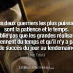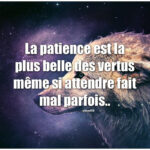 ~ Anonyme La patience se nomme martyre quand une mère attend la guérison de son enfant. ~ Anne Barratin (Chemin faisant, 1894) Pour acquérir la vertu de la patience, nous devons ouvrir notre cœur afin d’être tolérant envers les gens qui nous font attendre. ~ Anonyme 3) Citations sur : Patience et leçons de vie Prendre le temps, jour après jour. ~ Anonyme Un instant de patience est déjà une victoire. ~ Abi Taleb On ne naît pas patient, mais on peut le devenir. ~ Anonyme La patience est l’art de trouver autre chose à faire. ~ Groucho Marx La patience est une vertu qui s’acquiert avec de la patience. ~ Alessandro Morandotti Soyez patient avec tout le monde mais surtout avec vous-même. ~ François de Sales Au début elle nous manque.