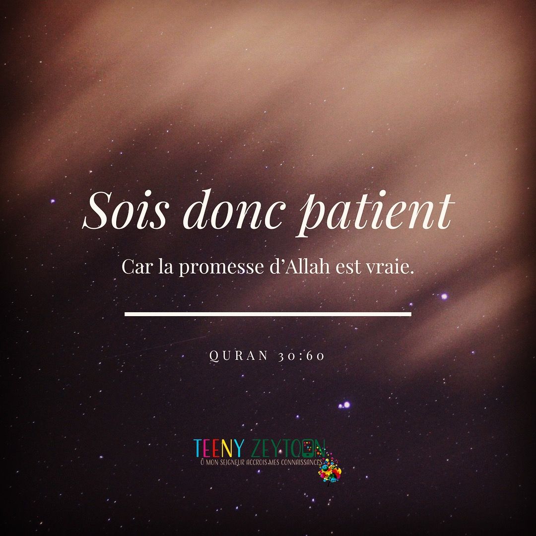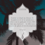 Parmi les 40 « rabbanas » (invocations tirées du Coran), se trouve : « Seigneur, Déverse sur nous l’endurance et fais nous mourir entièrement soumis ! » (sourate 7, verset 126) Qu’Allah nous accorde la patience, l’endurance, la sérénité et la confiance en Son décret. Qu’Il nous en rende satisfaits quoi qu’il arrive. Et n’oublions pas : « Sois patient. La fin heureuse sera aux pieux. » (sourate 11, verset 49)