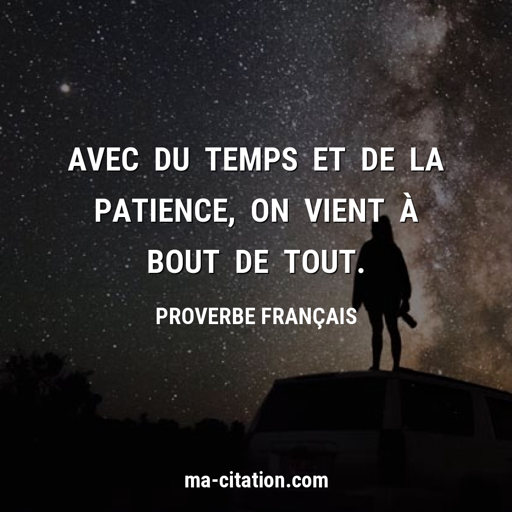 Citation de Gustave Flaubert ; Lettre à Louise Colet, le 13 décembre 1846. La patience marche de triomphe en triomphe. Citation de Jean-Louis Moré ; Le petit livre pour le premier âge (1840) La patience est une vertu qui porte toujours sa récompense avec elle. Citation de Axel Oxenstiern ; Les réflexions et maximes (1645) Plus la patience du peuple est grande, et moins l’impuissance du pouvoir est excusable. Un cheval qui n’a pas de jambes s’arrête dès qu’on lui rend la main. Un gouvernement qui n’a pas d’idées tombe dès qu’on se croise les bras pour le regarder faire. Citation de Émile de Girardin ; Les pensées et maximes (1867) On peut beaucoup souffrir sans pourtant souffrir tout, et l’on voit à la fin sa patience à bout.