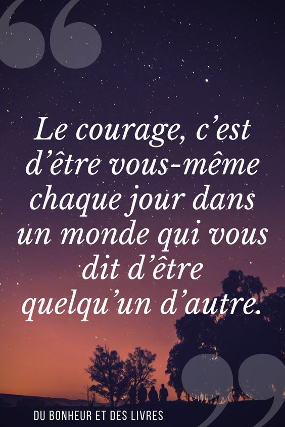 ~ François de La Rochefoucauld Le courage c’est d’avoir peur de la mort et de remonter la pente quand même. ~ John Wayne Il vaut mieux un peureux qui assume sa peur qu’un courageux qui gaspille son courage. ~ Frédéric Dard Le courage consiste à faire ce dont vous avez peur. Car il n’y a pas de courage sans crainte. ~ Eddie Rikenbacker Surmonte tes craintes en leur faisant face. Si tu bats en retraite, elles te hanteront toute ta vie. ~ Anonyme D’habitude, nous pensons que les gens courageux n’ont peur de rien. En fait, ce sont des intimes de la peur. ~ Pema Chödrön Le courage n’est pas de n’avoir jamais peur, mais de ne pas permettre à son action d’être influencée par la peur.