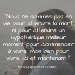 Citation de Antoine Claude Gabriel Jobert ; Le trésor de pensées (1852) De toutes les raisons que nous avons de vivre, la curiosité est encore la meilleure. Citation de Victor Cherbuliez ; Paule Méré (1864) Nombreux sont ceux qui ne vivent et n’agissent que pour paraître. Citation de Samuel Ferdinand-Lop ; Les nouvelles pensées et maximes (1970) J’ai peu de temps à vivre sur cette terre que je souhaite le vivre le plus heureux possible ; et, quand la mort viendra, elle frappera une victime résignée, qui tombera en souriant ! Citation de Alexandre Dumas, fils ; Antonine (1849) Vivons avec ceux qu’on aime comme si c’était la dernière année, peut-être le dernier mois. Citation de Henri-Frédéric Amiel ; Journal intime, le 31 mai 1849.
