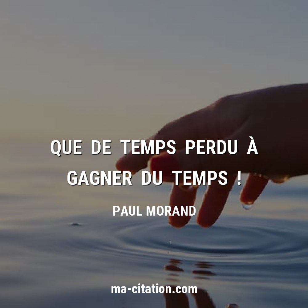 Citation de Rémy de Gourmont ; Les réflexions sur la vie (1895-1898) Je travaille jour et nuit ; la raison en est que j’ai peu de temps à vivre, et que je ne veux pas perdre de temps ; mais je voudrais bien aussi ne pas vous faire perdre le vôtre. Citation de Voltaire ; Lettre à Marie du Deffand, le 11 décembre 1769. Le Temps fuit, et le Temps perdu ne revient jamais. Citation de Pierre Véron ; Paris s’amuse (1862) Ne perdez pas trop de temps à avoir envie de… à essayer de faire… faites-le ! Citation de Jacques Salomé ; Papa, maman écoutez-moi vraiment (1989)