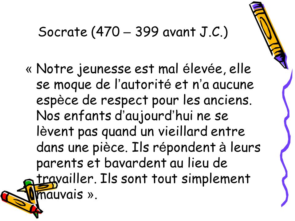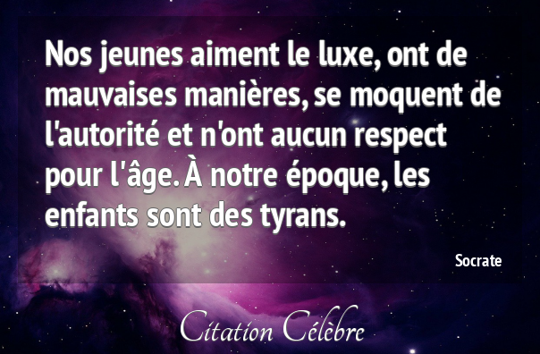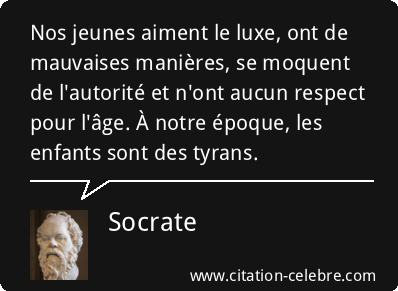 Nos jeunes aiment le luxe, ont de mauvaises manières, se moquent […] – Socrate