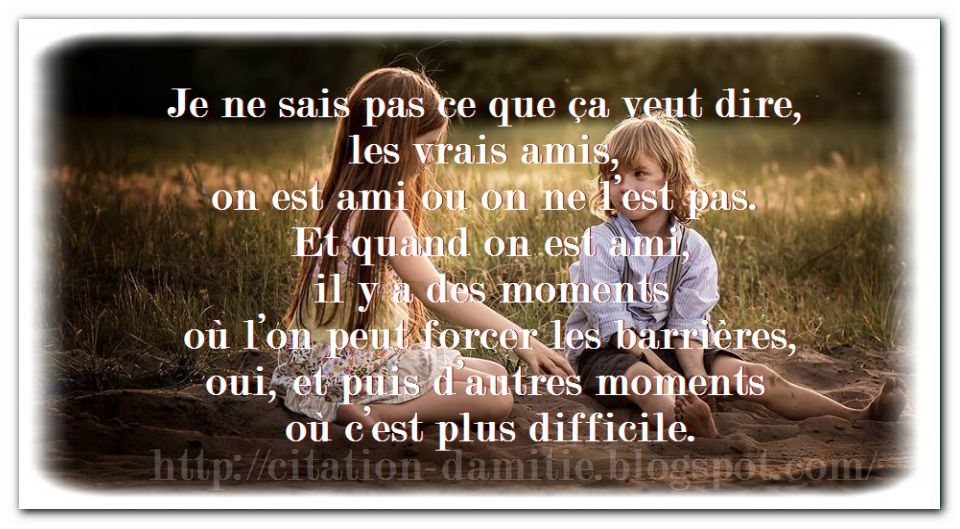 Citation de Henri-Frédéric Amiel ; Journal intime, le 6 mai 1872. On ne pardonne aux véritables amis que ce qui est pardonnable. Citation de Christine de Suède ; Les maximes et pensées (1682) Où l’amour a vécu à l’état de rêve, peut vivre la véritable amitié. Citation de Anne Barratin ; De vous à moi (1892) L’amitié est le trésor le plus précieux et le plus rare de la vie. Un véritable ami partage mes plaisirs et mes peines ; il tolère mes défauts, et n’a point de lâche complaisance pour eux. Il ne me fait point de protestations continuelles de zèle, mais il me marque, dans toutes ses actions, un tendre et sincère attachement. C’est mon intérêt qu’il désire, et qu’il cherche préférablement au sien.