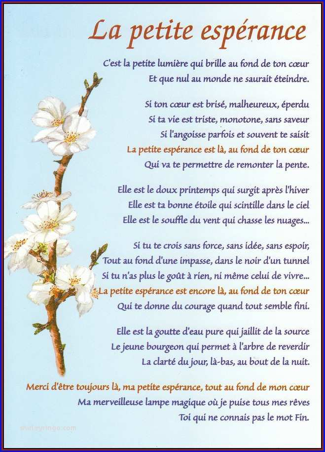 L’espérance est la plus grande consolation des malheureux. Elle tarit les larmes, elle donne du courage, de la patience, et de la joie. Citation de Jean Baptiste Blanchard ; Les maximes de l’honnête homme (1772) Pourquoi le mot avenir renferme-t-il pour tous le mot espérance ? C’est que le présent ne suffit à personne, il ne porte jamais en lui la complète satisfaction de nos désirs les plus légitimes, et l’homme qui s’y cramponne honteusement ressemble à la brute qui, après avoir fouillé tout le jour dans un fumier et y avoir trouvé sa pâture, s’y couche et dort sans inquiétude du lendemain, mais aussi sans l’espoir qui dore les rêves.