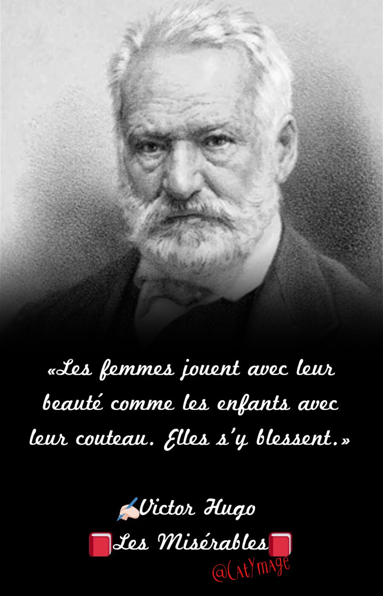 Victor Hugo ; Les misérables (1862) L’indifférence de ces penseurs, c’est là, selon quelques-uns, une philosophie supérieure. Victor Hugo ; Les misérables (1862) Le premier symptôme de l’amour vrai chez un jeune homme c’est la timidité, chez une jeune fille c’est la hardiesse. Victor Hugo ; Les misérables (1862) Les bras des mères sont faits de tendresse ; les enfants y dorment profondément. Victor Hugo ; Les misérables (1862) Partout où il y a une jolie femme, l’hostilité est ouverte. Victor Hugo ; Les misérables (1862) Le compliment, c’est quelque chose comme le baiser à travers le voile. Victor Hugo ; Les misérables (1862) Faire des compliments à celle qu’on aime est la première façon de faire des caresses.