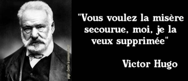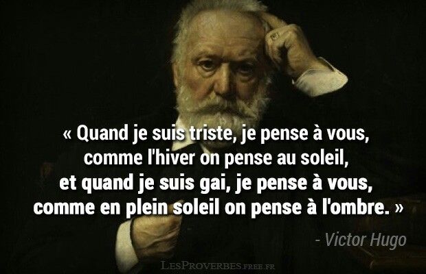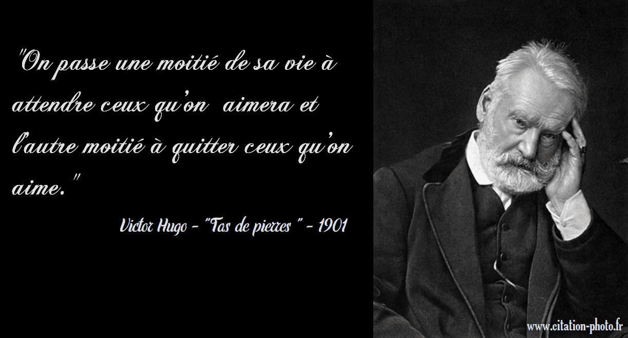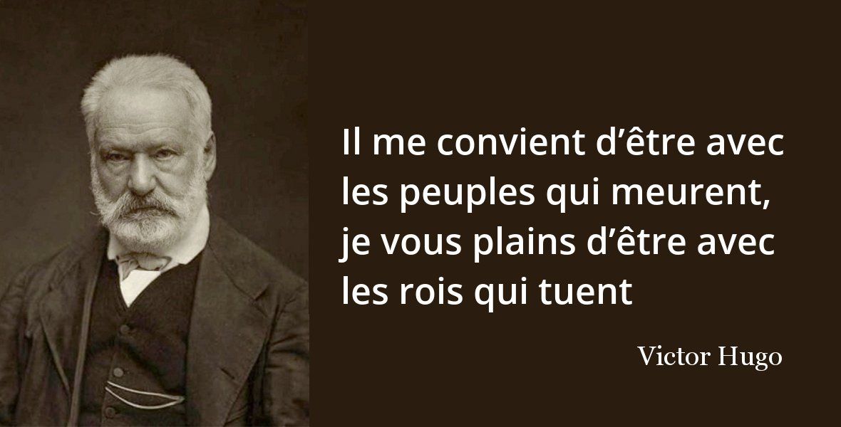 1) Citations de Victor Hugo extraites de Choses vues , 1887 & 1900 : Tout homme comprend mal son intérêt. D‘ordinaire les empires conquérants meurent d‘indigestion. Les grandes révolutions naissent des petites misères comme les grands fleuves des petits ruisseaux. Ne soyons plus anglais ni français ni allemands. Soyons européens. Ne soyons plus européens, soyons hommes. Soyons l‘humanité. Et de l‘union des libertés dans la fraternité des peuples, naîtra la sympathie des âmes, germe de cet immense avenir où commencera pour le genre humain la vie universelle et qu‘on appellera la paix de l‘Europe. 2) Citations de Victor Hugo de L’année terrible, Paris incendié , 1871 : On peut trouver le mal en cherchant trop le bien. Le cœur s’attendrit mieux lorsque l’esprit comprend. Cette Société usurpe notre bien, et prend tout même à ceux qui n’ont rien.