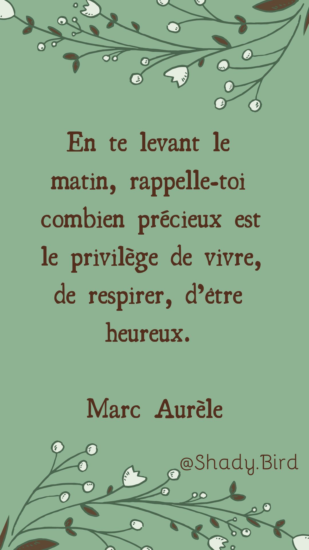 ~Robert Lalonde Il ne faut pas attendre d’être parfait pour commencer quelque chose de bien ~Abbé Pierre Tourne-toi vers le soleil, et l’ombre sera derrière toi!~ Proverbe Maori Ne mettez jamais la clé de votre bonheur dans la poche de quelqu’un d’autre.~ Aimer, c’est donner rendez-vous au bonheur dans le palais du hasard.~Abel Bonnard Le bonheur c’est de continuer à désirer ce qu’on possède. ~Saint Augustin Tous les hommes pensent que le bonheur se trouve au sommet de la montagne alors qu’il réside dans la façon de la gravir.~Confucius Hier n’existe plus , demain ne viendra peut-être jamais. Il n’y a que le miracle du moment présent, savoure-le. C’est un cadeau! ~Marie Stilkind C’est votre attitude, bien plus que votre aptitude, qui détermine votre altitude.