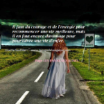 ~ Publilius Syrus (Sentences) Si tu as envie d’abandonner, regarde d’où tu es parti. ~ Anonyme On peut toujours abandonner, alors pourquoi le faire maintenant ? ~ Robert T. Kiyosaki Quand tu as envie d’abandonner, pense à la raison qui t’a fait commencer. ~ Anonyme Le courage te permet de courir ta propre course. Le courage te permet de faire tout ce que tu veux parce que tu sais que c’est juste. Le courage te donne la maîtrise de toi-même pour persister là où les autres ont abandonné. ~ Robin S. Sharma 11) Citations sur la vie et le courage : Le courage est le prix que la vie exige pour accorder la paix. ~ Amelia Earhart Comment serait votre vie si vous n’aviez pas le courage de tenter des choses ?
