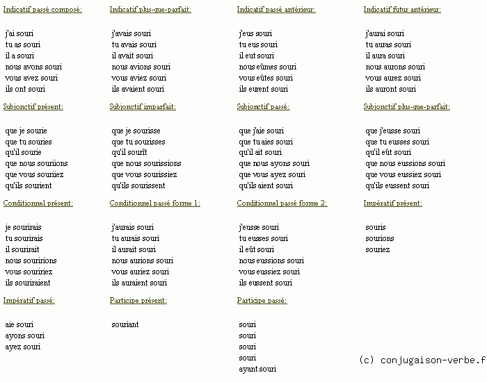 3. j’ai souri. tu as souri. il a souri. nous avons souri. …