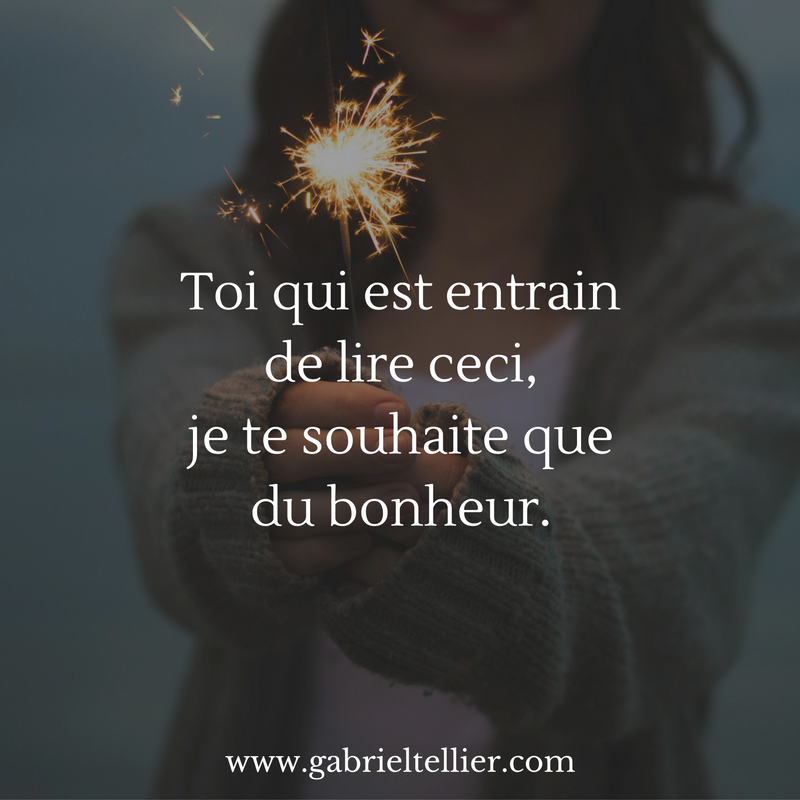 – Quentin Boulay CITATION BONHEUR IMAGE #006 ➯ Le bonheur repose sur le choix que chacun fait de ses plaisirs. – Auteur inconnu ➯ Le bonheur est une fonction de l’amour. Rien d’autre ne rend quelqu’un plus heureux que l’amour. – Osho citation bonheur et amour ➯ Le simple fait d’être gratifiant et de croire en bonheur est déjà une partie du bonheur. – Quentin Boulay ➯ La vrai source du bonheur est en son cœur. – Proverbe vietnamien citation courte sur le bonheur et l’amour ➯ Ne laissez pas le monde changer votre sourire, mais laissez votre sourire changer le monde. – Sagesse universelle ➯ Suis la direction de l’amour, et cette dernière te conduira inévitablement au bonheur.