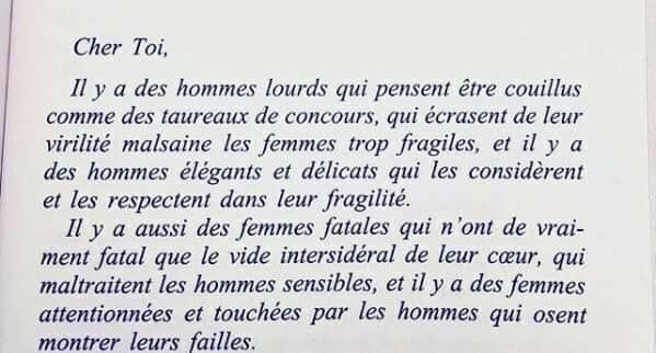 Lettre d’amour pour un homme lorsque vous voulez booster sa confiance Mon vaillant chevalier, Je ne te l’ai pas dit depuis longtemps alors j’ai décidé de le mettre par écrit. Tu es l’homme le plus attirant et touchant que je connaisse et j’ai du mal à croire que tu sois mien. Tu me fais rire et tu me donnes des orgasmes comme personne d’autre, avant toi. Tu es parfait pour moi ! Je ne changerais rien chez toi. J’aime le son de ta voix, la façon dont tu m’embrasses et le fait que tu connaisses tous mes secrets et mes faiblesses, mais que tu m’acceptes quand même telle que je suis.