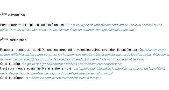 Méditer sur Dieu, sur l’âme. Il y a longtemps qu’elle médite sur cette déclaration [SÉV., 455] Il vaut mieux ne point méditer que de méditer sur des chimères [MALEBR., Rech. vérité, III, 2, 9] On dit quelquefois en ce sens : méditer à. Ceux qui y penseront sérieusement [à une proposition], et qui voudront avec moi prendre la peine d’y méditer [DESC., Rép. II, 11] Croyez-vous, ma bonne, que vos affaires ne tiennent pas une grande place dans mon cœur ? je crois que j’y médite plus tristement que vous [SÉV., 4 oct. 1684] Peu lire et beaucoup méditer à nos lectures [J. J. ROUSS., Hél. I, 12] Je vous promets bien de m’occuper beaucoup du respectable objet de vos lettres, d’y réfléchir, d’y méditer, et de ne vous répondre…. [ID., Lett. au prince de Wirtemberg, 17 oct. 1763] Absolument.