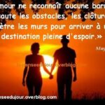 L’espérance, c’est de pouvoir vivre une réalité magnifique qui ne s’est pas encore actualisée dans le plan physique. ~ Omraam Mikhaël Aïvanhov (29 mai 2021) Citations : 10) Sentiments et espoir L’amour sans l’espoir devient une chose morte. ~ Alain Grandbois L’espoir, malgré moi, s’est glissé dans mon cœur. ~ Racine (Phèdre) L’espérance, dont l’amour nous berce, vaut souvent mieux que la réalité. ~ Proverbe français Il suffit d‘un très petit degré d‘espérance pour causer la naissance de l‘amour. ~ Stendhal (De l‘amour, 1822) L’espérance est la plus grande et la plus difficile victoire qu’un homme puisse remporter sur son âme.