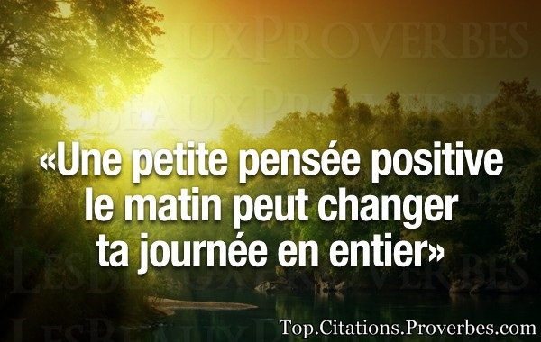 » Denis Waitley « Nous sommes ce que nous pensons. Tout ce que nous sommes résulte de nos pensées. Avec nos pensées nous bâtissons notre monde. » Bouddha « C’est à l’âge de dix ans que j’ai gagné Wimbledon pour la première fois… dans ma tête. » André Agassi « Au fur et à mesure que je modifie mes pensées, le monde autour de moi se transforme. » Louise L. Hay « Pensez de manière positive et la vie devient plus riche. » Edward Verno « Il faut positiver, c’est une façon formidable de vivre. » Jean Gastaldi « La plus grande découverte de notre génération a été de s’apercevoir qu’un homme peut changer sa vie en modifiant sa façon de penser.