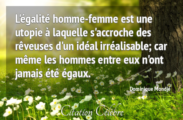 Citation de Nicolas Massias ; Le rapport de la nature à l’homme (1823) Si les femmes n’ont pas toutes les vertus, elles en ont du moins davantage que les hommes ; elles ont plus de courage qu’eux dans leurs maux et dans la difficulté, plus de résignation dans leurs malheurs, plus de stabilité dans leurs sentiments, plus de profondeur dans leurs affections, plus d’héroïsme dans leur dévouement, plus de douceur et de sensibilité, plus de bonté et de pudeur que bien des hommes. Citation de Hypolite de Livry ; Les pensées et réflexions (1808) De même qu’il ne peut pas vivre sans oxygène, l’homme ne peut pas vivre sans femme. Citation de Pierre Desproges ; Vivons heureux en attendant la mort (1983) L’homme et la femme ne se rencontrent qu’une fois.