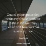 15 phrases qui font réfléchir… 8 Asseyez-vous confortablement, faites-vous un bon thé fumant, ouvrez votre esprit tout grand et lisez ces paroles. Chaque mot a un sens bien précis, qui a pour but de nous conduire vers une petite ou grande révélation ! Ces phrases sont sages et enrichissantes. Je vous souhaite une bonne lecture et n’hésitez pas à partager celle qui vous a le plus touché !!! 1• « Qui craint de souffrir souffre déjà de ce qu’il craint. » – Michel De Montaigne 2• « Avant de vous diagnostiquer comme dépressif ou en état de faible estime de vous-même, commencez par vous assurer que vous n’êtes pas juste, en fait, entouré de connards. » – William Gibson 3• « Si vous cherchez le bonheur pour vous-même, il vous échappera toujours.