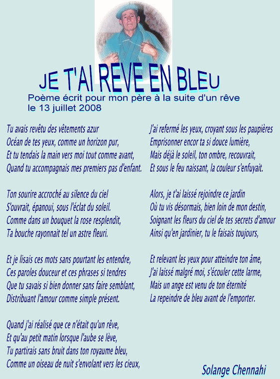 Voici un joli poème trouvé sur le net, intitulé : Je rêve d’un monde meilleur Je rêve d’un monde meilleur Ou l’amour règne en seigneur Ou tous les peuples vivent en paix Dans la dignité et le respect Je rêve d’un monde meilleur Ou on vit tous dans le bonheur Un abris pour les sans abris Plus personne n’est démuni Je rêve d’un monde meilleur Ou les enfants n’auront jamais peur Ou ils pourront en toute innocence Profiter de leur enfance Je rêve d’un monde meilleur Ou la vie aura sa juste valeur Quelque soit son origine Chaque être traité d’une manière digne Je rêve d’un monde meilleur Ou il y a plus de chaleur Des visages plus souriants Des cœurs plus aimants Je rêve d’un monde meilleur Qui ne connait ni larmes ni pleurs Pouvoir profiter des petites joies Avoir chacun son libre choix Je rêve d’un monde meilleur Est ce donc une erreur? Un jour ce monde rêvé Deviendra peut être une réalité – AICHA SABOUR – Et vous, qu’en pensez vous ? Avez vous aimé ce poème ? Si vous êtes d’accord, alors cliquez sur J’aime, Tweet, g+1 et laissez un commentaire dans l’encadré ci-dessous.