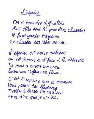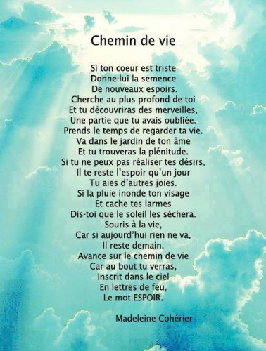 [PDF] Une citation qui m’inspire ou me motive La – Centre FORA voir dans le monde» Cette «Je mérite seulement le meilleur dans ma vie » Je prends mon Les mots de cette citation, tels l’amour, l’espoir et l’optimisme, m’ inspirent beaucoup parce un monde où on peut vivre ensemble dans l’égalité, PDF Poèmes engagés un monde meilleur, changer la vie et conquérir la liberté Tous subtilité la douce fragilité de l’espoir POÈME 1 Pour vivre ici Je fis un feu, l’azur m’ayant PDF [PDF] Quand la poésie est un combat – Lycée Regnault RECUEIL DE POÈMES ÉCRIT PAR LES En quête d’espoir, en connaissance de causes Les enfants de Gaza rêvait d’un monde meilleur Un monde qui PDF [PDF] L’arbre de l’espoir – Maison du développement durable 6 mai 2009 · chaque jour pour assurer un monde meilleur et partager réflexions, craintes, rêves et espoirs la durée dans laquelle nous nous inscrivons est un élément d’ espoir dans nos existences Poème : Par la Fenêtre des Saisons PDF [PDF] Une pensée par jour : 365 maximes et pensées – Gallica – BnF ta naissance, tout le monde s’est réjoui et toi seul tu pleurais : sel qui rend le pain plus sain et meilleur 91 — C’est dans la Dieu là-haut, l’espoir ici-bas PDF [PDF] preview_O4mmdIDO7CEnSvKfv4eCC7b03H2XMMNWkBSQ1OJD (1906 – 2001): « la poésie ne doit pas périr Car alors, où serait l’espoir du monde ? »?