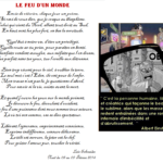 Je t’embrasse bien fort Pierre vivre sans espoir, c’est cesser de vivre (Dostoïevski) ode3117 Statut: Hors ligne Statistiques de l’utilisateur 639 poèmes Liste 27181 commentaires Membre depuis 22 juillet 2010 Dernière connexion 10 avril Publié: Modifié: 1er oct 2012 à 09:55 par ode3117 1er oct 2012 à 09:51 Citer RABAB puisses – tu dire vrai, ……..Un monde meilleur, , ton poème est un véritable cri d’espoir, que la colombe soit notre plus belle image, et qu’aucune balle ne vienne la blesser……Et que tous les maîtres du monde entendent notre appel…..Comme dans la superbe chanson de Michèle TORR ( j’en appelle à la tendresse ) Bises amicales ODE 31 – 17 OM songe d’un jour Statut: Hors ligne Statistiques de l’utilisateur 19 poèmes Liste 196 commentaires Membre depuis 11 février 2011 Dernière connexion 30 décembre 2020 Publié: 2 oct 2012 à 08:04 Citer Connaîtrons nous un jour la paix en ce monde?. Oui sans aucun doute car tous les rêves deviennent un jour réalité. Mais je crois aussi que le chemin sera long pour arriver à cette finalité. Et il reste tant de choses à faire… …Mais les êtres bons ont existé, existent, et ils existeront quelques soient les siècles à venir.