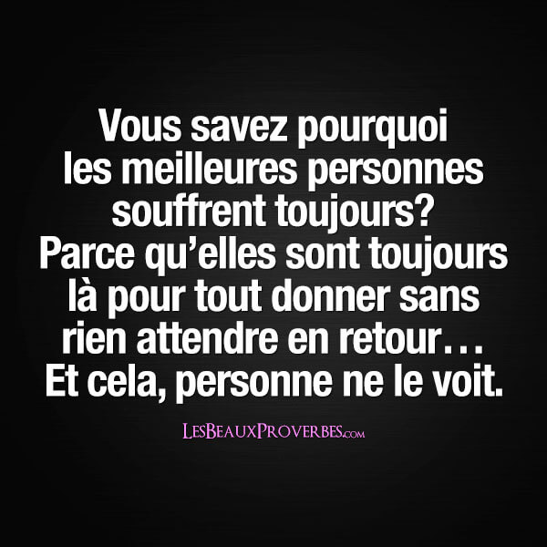 Quand tu donne à quelqu’un plus que sa valeur citation ? La citation la plus longue sur « Quand tu donnes » est : « Quand tu donnes plus que sa valeur à une personne, il oubliera la vérité de son passé et sa galère. » .