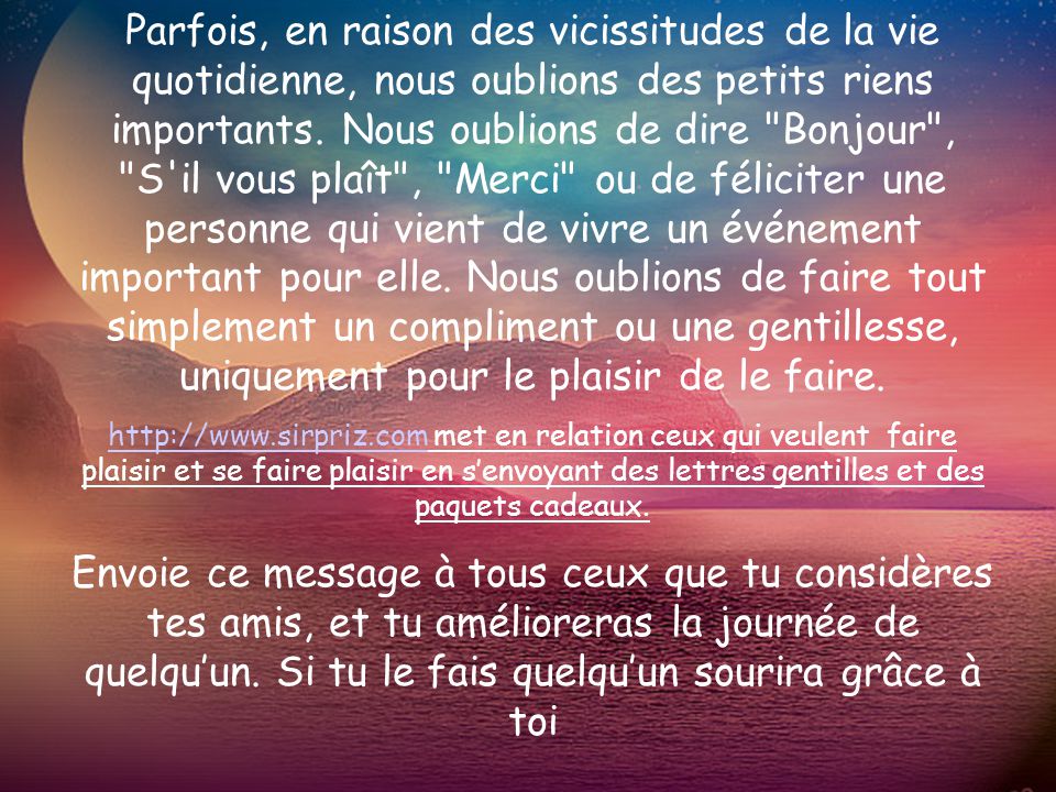 Le succès, c’est d’avoir ce que vous désirez. Le bonheur, c’est aimer ce que vous avez. H. Jackson Brown 18. Il ne faut pas de tout pour faire un monde. Il faut du bonheur et rien d’autre. Paul Éluard 19. La vie est une aventure audacieuse ou elle n’est rien. Helen Keller 20. Il y a un moment où les mots s’usent. Et le silence commence à raconter. Khalil Gibran 21. Agir librement, c’est prendre possession de soi. Bergson 22. La qualité de l’homme se calcule à sa démesure. Tentez, essayez, échouez même, ce sera votre réussite. Jacques Brel 23. On ne fait rien d’extraordinaire sans hommes extraordinaires et les hommes ne sont extraordinaires que s’ils sont déterminés à l’être. Charles de Gaulle 24.