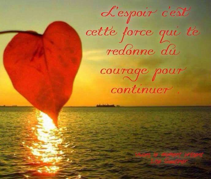 ~ Dominique Glocheux Aujourd’hui, je choisis de vivre dans la lumière de mes espoirs plutôt que dans l’ombre de mes doutes. ~ Ray Davis L’espérance est une joie mal assurée qui provient de l’idée d’une chose future ou passée dont l’événement nous laisse quelque doute. ~ Baruch Spinoza (Éthique, 1677) L’espoir a les yeux brillants. ~ Michel Bouthot L’espoir garde l’homme en vie. ~ Anonyme Espoir de gain diminue la peine. ~ Proverbe français L’espoir est contagieux, comme le rire. ~ Joan Baez Au royaume de l’espoir, il n’y a pas d’hiver. ~ Proverbe russe L’espoir est ce qui nous permet de continuer. ~ Catherine Pulsifer On ne donne aux gens que l’espoir que l’on a. ~ Alain L’espoir est la patience avec la lampe allumée.