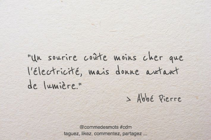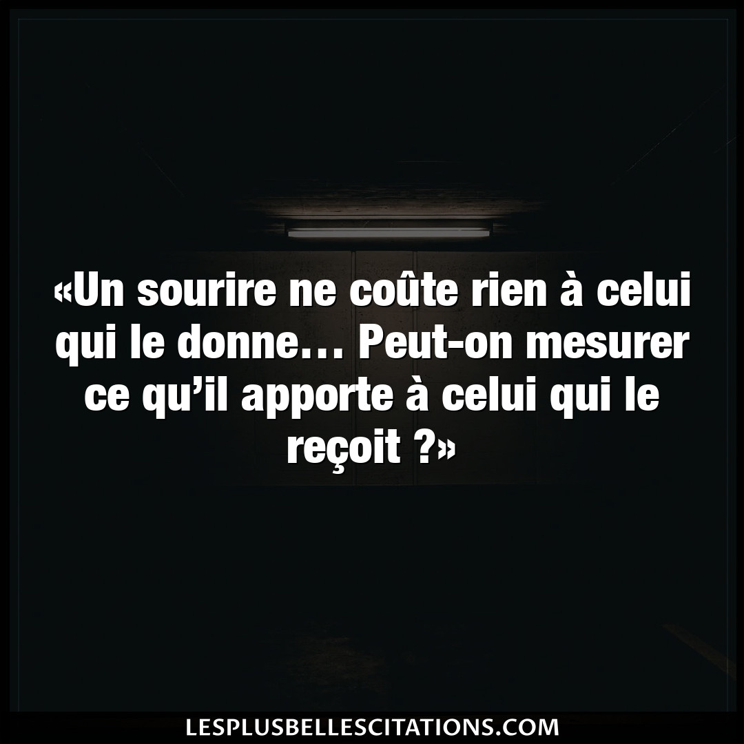 Citation de Marcel Jouhandeau ; Écrits secrets (posthume, 1988) On peut encore sourire quand on est malheureux : on sourit pour les autres. Citation de Diane de Beausacq ; Les pensées et maximes de la vie (1883) Donne-moi un de tes plus beaux sourires, un de ces sourires qui valent un soleil. Citation de Victor Cherbuliez ; Une gageure (1890) Il n’est rien de plus beau que de faire éclore sur les lèvres d’un malheureux la fleur divine du sourire. Citation de Victor Cherbuliez ; Les pensées extraites de ses œuvres (1913) La chance m’a souri de temps en temps, mais ses sourires ont été fugitifs. Citation de Jean Dutourd ; Le fond et la forme (1958) Le joli sourire d’une fillette mûrit trop vite.