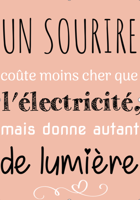 Citation sur le sourire #5: Tu peux laisser ton sourire changer les gens, mais ne laisse pas les gens changer ton sourire Citation sur le sourire #6: Certaines personnes nous font rire un peu plus fort, rendent nos sourires un peu plus vrais et rendent nos vies un peu mieux Citation sur le sourire #7: Si une personne ne te sourit pas, sois généreux et offre-lui ton sourire. Personne n’a plus besoin d’un sourire que celui qui n’est pas capable de sourire aux autres Citation sur le sourire #8: Un sourire coûte moins cher que l’électricité, mais donne autant de lumière Ne regrette jamais les moments qui t’ont fait sourire, car ce sont ces moments que tu n’oublieras jamais Le sourire sur mon visage ne veut pas dire que ma vie est parfaite; Il veut seulement dire que j’apprécie ce que la vie m’a donné Je suis en charge de ce que je ressens et aujourd’hui, je choisis d’être heureux Souviens-toi toujours que peu importe comment tu te sens, tu es la raison pour laquelle quelqu’un sourit Un sourire est le meilleur maquillage que tu peux porter.